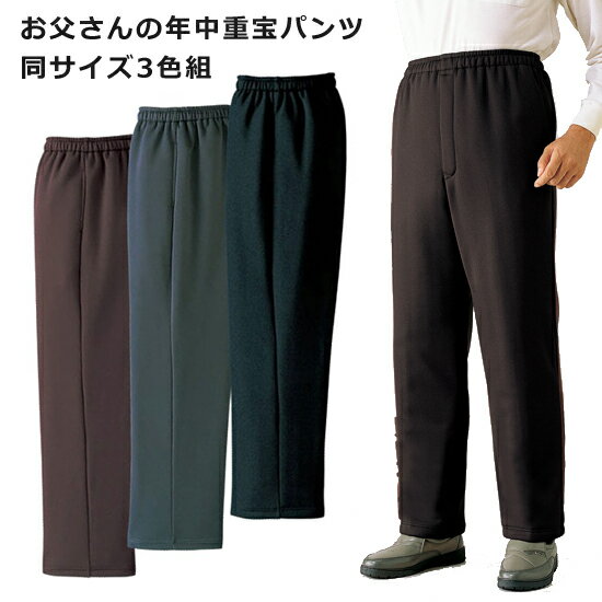 [お父さんの年中重宝パンツ 同サイズ3色組] M/L/LL 3L/4L 年中使えて重宝する!お父さんの重宝パンツ 同サイズ3色組 年中重宝!前ファスナーのストレッチパンツ ●普段着や部屋着に大活躍! ●動きやすいタテ・ヨコに伸びるストレッチ素材 ●ウエスト総ゴムで脱ぎ着もらくらく ●両脇ポケット付き、前ファスナー付き ●洗濯機で丸洗いできるのでお洗濯もカンタン ●春・夏・秋・冬の一年中使えるズボンです ●サイズはM・L・LL・3L・4Lより選べます ●グレー・ブラック・ブラウンの3色がセットになって洗い替えにも便利 ●股下65cm・70cmが選べて、裾上げする手間が省けます 普段着にぴったり!メンズストレッチパンツです。